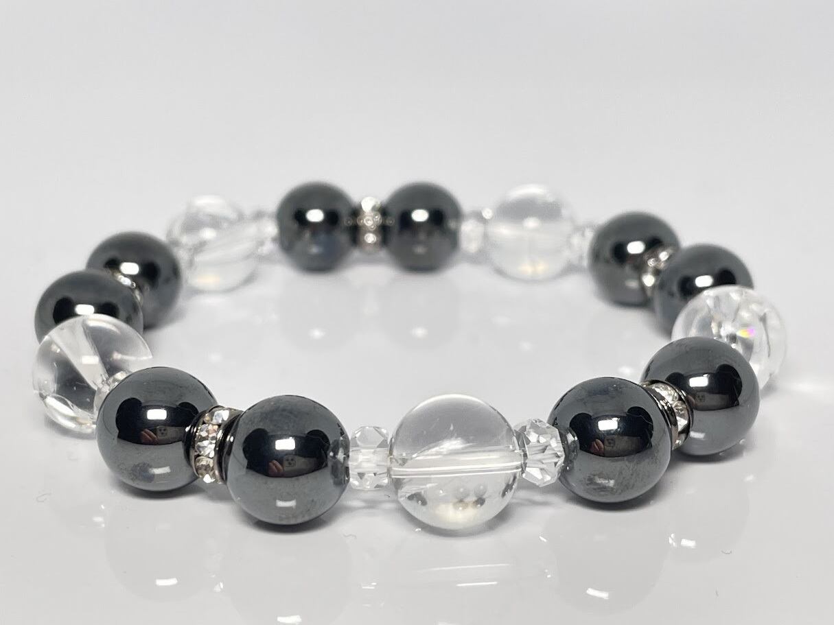 ・素材:ヘマタイト(10mm)、クリスタルクォーツ(水晶 10mm珠)
