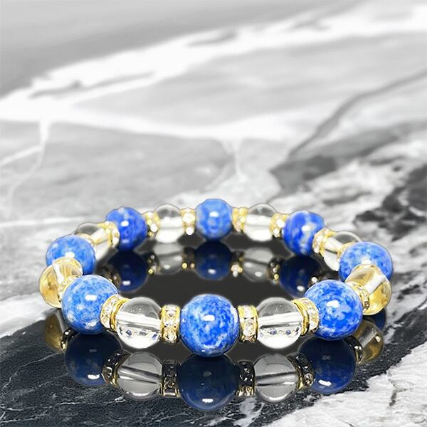 「運を引き寄せる特別な存在」ラピスラズリ(9mm)とクリスタルクォーツ(水晶 8mm)を使用した、魅力あふれるブレスレットです。ラピスラズリは金運、財運、仕事運を向上させる石として広く知られ、多くの方々から愛されています。一方、水晶は心身の浄化を助け、エネルギーを浸透させる力があると言われています。