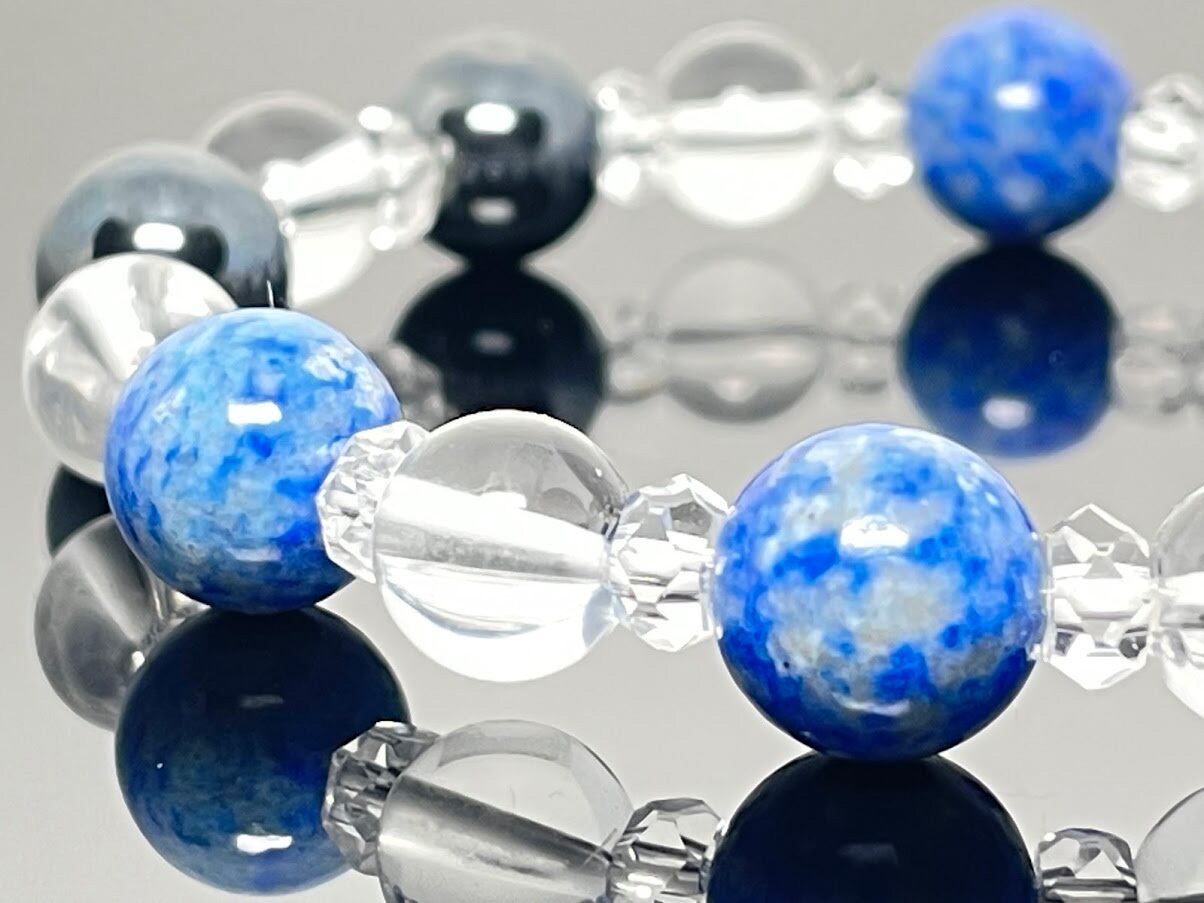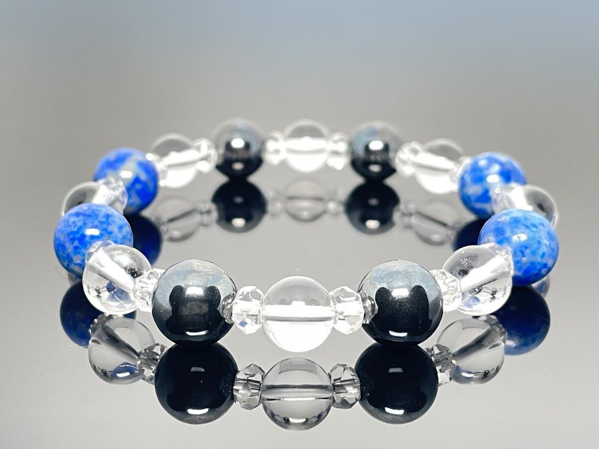 「心身の浄化と運気を引き寄せる特別なブレスレット」心身浄化に優れた水晶(10mm)と、金運・財運・仕事運を高めるラピスラズリ(10mm)とヘマタイト(10mm)を絶妙に組み合わせた贅沢な一品です。水晶は浄化の力を持ち、心のバランスを整え、持ち主をサポートします。一方、ラピスラズリとヘマタイトはそれぞれ、エネルギーと安定感を与え、ビジネスや日常生活においてポジティブな影響をもたらします。