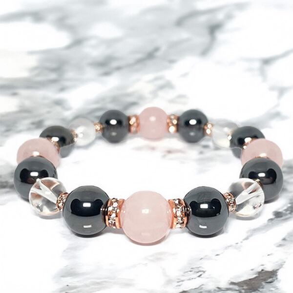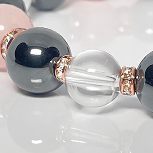 ・素材:ヘマタイト(10mm)、ローズクォーツ(10mm)、クリスタルクォーツ(水晶 8mm)