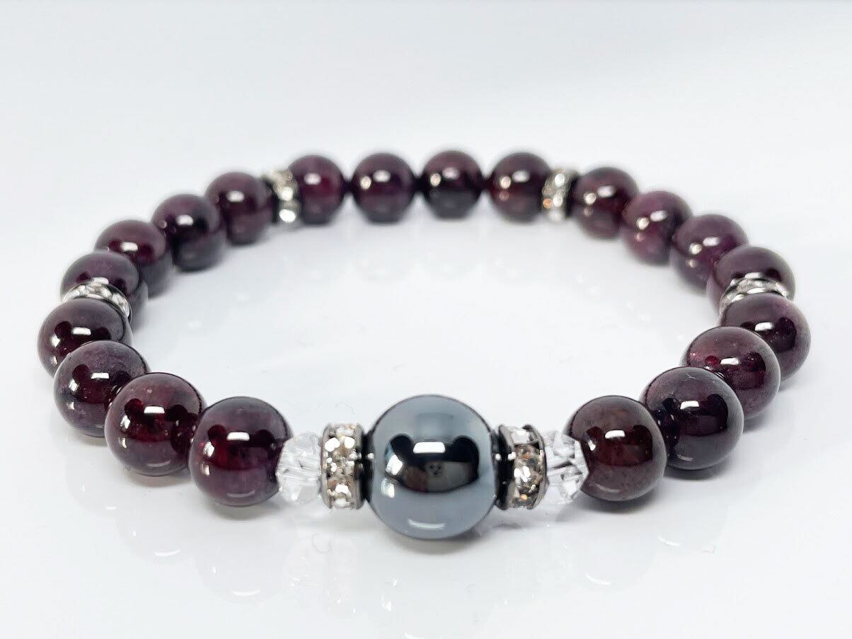 成功へ導く ガーネット(8mm珠) を贅沢に使用し、力強いエネルギーを持つ ヘマタイト(10mm珠) をワンポイントにあしらった特別なブレスレットです。ガーネットは「努力を実らせ、金運・財運・仕事運を高める石」とされ、目標達成を力強くサポート。さらに、ヘマタイトは「勝負運・行動力を高め、邪気を跳ね返す」といわれ、成功へ向かう力を強化してくれます。